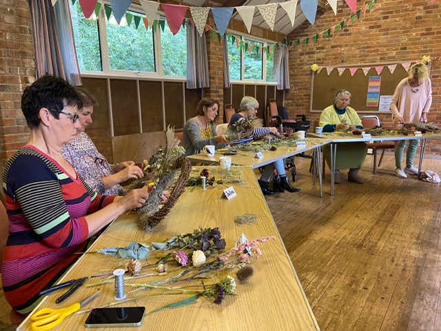 A fabulous time was had by all who attended the Nature Barn Blooms Everlasting Wreath Workshop at Felbrigg Village Hall on Saturday 8th June – Julia, Suzanne, Sally, Barbara, Annie and Karen.