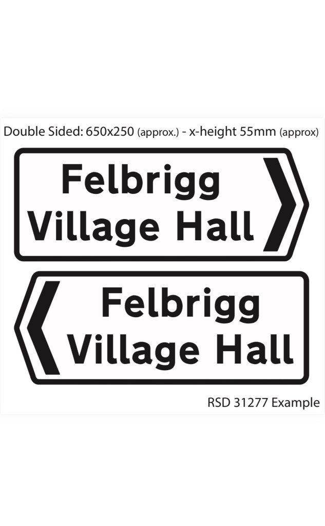 We have received approval from the Parish Council to place the sign on the Village Green opposite our entrance and have now applied for permission from Norfolk County Highways. Hopefully we will receive this soon and can then order the double sided sign and post, example below.